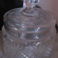 - Polveira con cristal tallado con motivos xeométricos e tapa rematada en bola facetada.