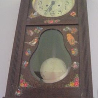 - Reloxo de parede con péndulo, caixa en madeira de castiñeiro , decorado con calcomanías de flores e paxaros.