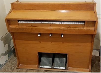 - Armonio da casa barcelonesa Alberdi, en madeira de piñeiro, con dous pedais e tres rexistros, a saber: Sordina/Expresión/Trémolo. Correspóndese á segunda etapa da casa fundada en 1897 polo mestre organeiro Lope Alberdi Recalde (Gauteguiz de Arteaga, 1869-Barcelona, 1948), cando dirixía a produción o seu fillo, o compositor e tamén organeiro, Antonio Alberdi Aguirrezábal (Durango, 1803-Bilbao, 1966). No frontal do instrumento, nunha placa rectangular en metal con letra impresa e en cursiva, reza "Alberdi", denominación definitiva empregada tras a morte do fundador, talvez xa a a partir de 1930, de acordo cos catálogos publicitarios editados pola empresa.