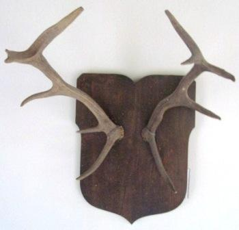 - Panoplia en madeira en forma de escudo que suxeita dous cornos de cervo; un de seis puntas e outro de cinco puntas.