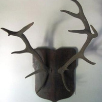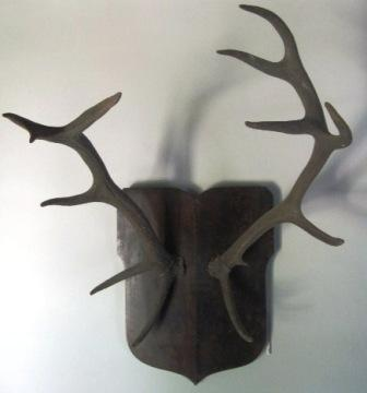- Panoplia en madeira en forma de escudo que suxeita dous cornos de cervo, un de seis puntas e outro de sete puntas.