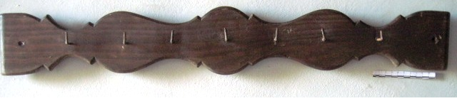 - Colgador con sete puntas para fustas, feito en madeira formando ondas pola parte superior e inferior.