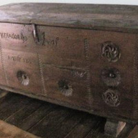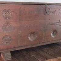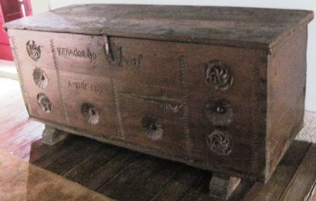 - Arca de gardar en madeira de castiñeiro, de taboleiros enteirizos ensamblados en cola de miñato. Vai apoiada en dúas zapatas. A face frontal vai tallada con hexapétalas e unha espada rudimentaria, motivos de obvia significación apotropaica. Tamén consta da inscrición :"YZOLA DOMINGO ANTº","ANO DE 1759". Pechadura de ferro forxado con perno e palastro embelecedor.