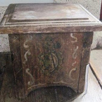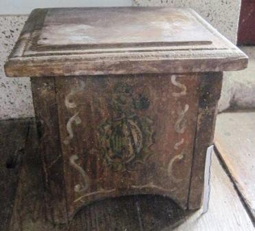 - Peaña baixa de planta cadrangular en madeira de castiñeiro con repisa voada perfilada cun filete e pé de antepeito sobre arco moi apaisado. Nun dos laterais, debuxado a plumilla por D. Benxamín de Prado, o escudo de armas do apelido Taboada-Zuñiga.