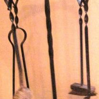 - Soporte en ferro con accesorios de cheminea: tenaces, vasoira, paleta e gancho.