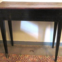 - Mesa en madeira de castiñeiro con catro patas afusadas e pintada a parte de abaixo de negro.