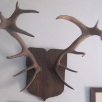 - Panoplia en madeira de castiñeiro en forma de escudo que serve de soporte a dous cornos de cervo: un de oito puntas e outro de nove puntas.