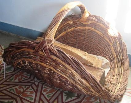 - Cesta para leña en vimbio con asa.