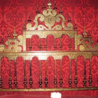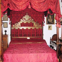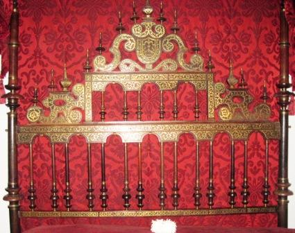 - Cama napolitana de campaña con pavillón, en madeira pulimentada de pau de santo e incrustacións con apliques de arabesco en bronce dourado no cabeceiro. Como emblema heráldico, un tríscele dextroso de flores de lis, quizais relativos ao apelido Varela.