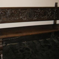- Banco dos chamados "de espaldar" en madeira de castiñeiro. Respaldo en madeira tallada con relevos de híbridos de léon acantizados que flanquean o escudo heráldico do Pazo (1er cuartel: Garza de Castillón, 2º: Sarmiento, 3º: Quiroga de la Puebla, 4ª Cuartel: Valladares). Catro patas en madeira torneada aseguradas por fiador en ferro forxado.