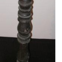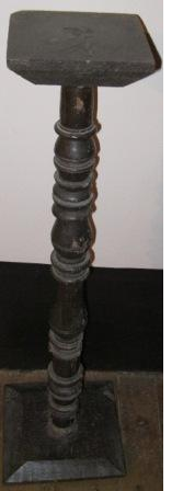 - Peaña que consiste nunha columna torneada en madeira de castiñeiro, animado o seu perfil con molduras lenticulares propias do reinado de Filipo IV o que delata unha reutilización da pata de bargueño para a súa feitura; base e cara superior de forma cadrada.