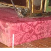 - Soporte de forma rectangular donde está apoiada a liteira, en madeira tapizada con tea de damasco de seda natural de cor vermello.(A tea de damasco pertence ao século XVIII).