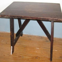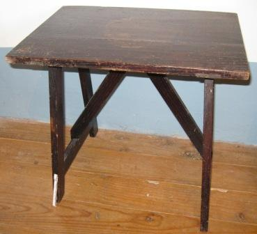 - Mesa de noite en madeira de castiñeiro apoiada en catro patas unidas cada dúas por travesaños.