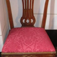 - Cadeira en madeira de caoba. Asento acolchado en tea adamascada con granate. Catro patas afusadas unidas por travesaños. Respaldo cunha sorte de lira (en realidade tipo shieldback)ao estilo Imperio ou Country Chippendale interpretado por Dunchan Phyfe. Da casa Cabezas, en Chantada, copia das cadeiras do XIX da Sala de Armas, froito dun encargo de don José Taboada Zúñiga.
