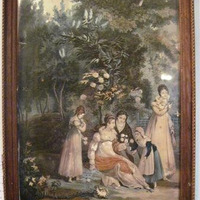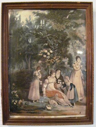 - Litografía coloreada (estampación e augatinta) que representa escena familiar de estética romántica nemorosa. Incompleta, pois carece de extremo dereito, trátase dunha obra do gravador Jean-Pierre Marie Jazet (1788-1871), Le Printemps, sobre un deseño do ilustrador Pierre Martinet (1781-18…) que formaba parte dunha serie de catro gravados dedicados ás estacións do ano saídas do prelo parisién de Basset o ano 1817.