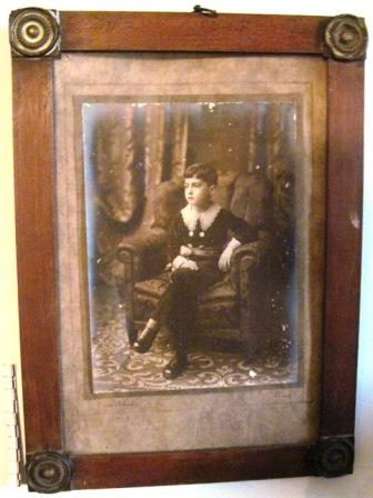 - Fotografía en branco e negro de Fernando Taboada de Andrés, de neno. Marco en madeira con catro aplicacións en bronce nas esquinas. Do estudio fotográfico de Ernesto Schreck Schültz, estabelecido en Ourense en 1922.