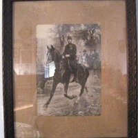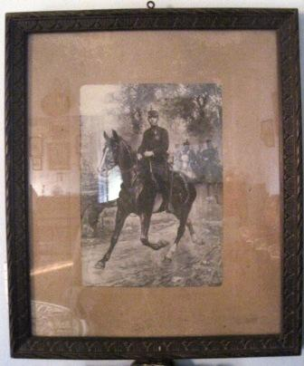 - Fotografía en branco e negro do retrato ecuestre orixinal de Román Navarro (1854-1928) conservado no Museo de la Academía de Caballería de Valladolid. Marco en madeira tallada.