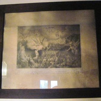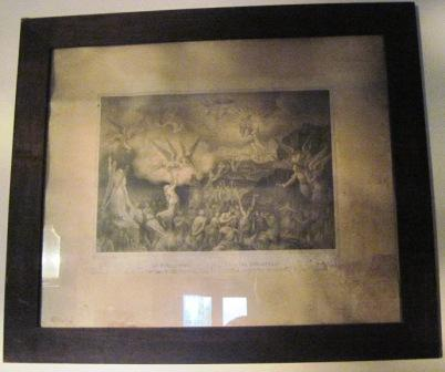 - Gravado da casa L. Turgis que representa unha escena do Purgatorio e inscrición:"Nadie entrará en el reino de los cielos si no ha sido purificado de antemano", lema incluido no Catecismo para Párrocos do Concilio de Trento. Marco en madeira.