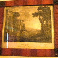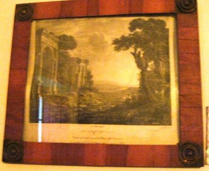 - Litografía que representa a caída do sol nunha cidade en ruínas. Marco en madeira con apliques en bronce nas esquinas. É litografía asinada por Aquiles Parboni (que traballou para o "Real Establecimiento Litographico" entre 1838 e 1841) da obra orixinal de Claudio de Lorena que formaba parte da colección persoal de José de Madrazo, director da colección de litografías na que estaba incluída esta obra.