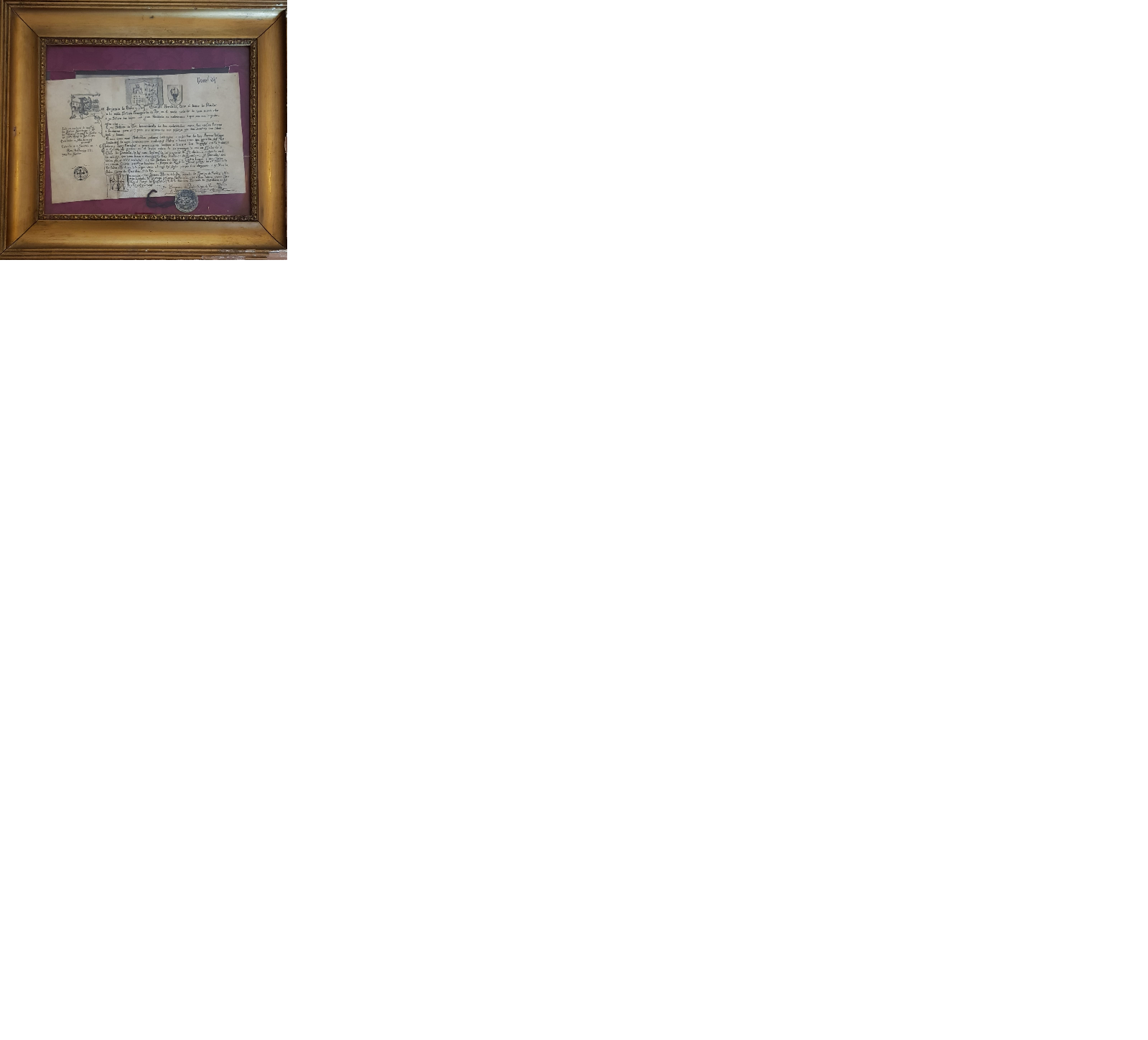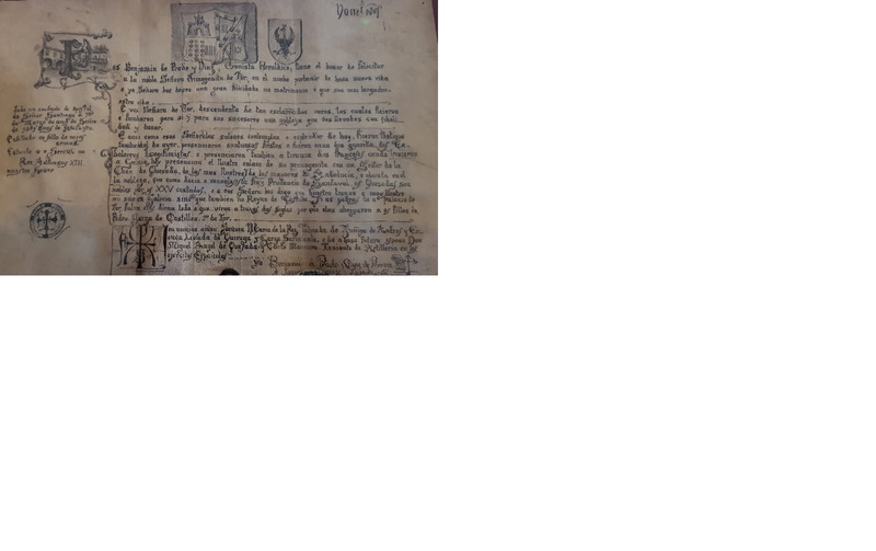- Pergamiño realizado e escrito por D. Benxamín de Prado a plumilla: unha felicitación de voda ilustrada con escudos heráldicos da casa de Tor e da solaina do leste, con reminiscencias medievais e diplomáticas (pende un selo a modo de privilexio rodado, neste caso do Rei Alfonso XIII) dedicada a Mª Paz Taboada.
