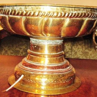 - Braseiro en bronce dourado en forma de pía gallonada con dúas asas laterais avolutadas en forma de C. Apoiado sobre pé circular moldurado.