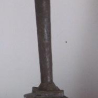 - Candeeiro dunha soa luz en madeira de castiñeiro e ferro. De corpo cilíndrico con progresión volumétrica en altura rematado en bocel voado sobre pedestal troncopiramidal.