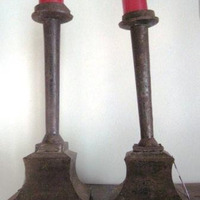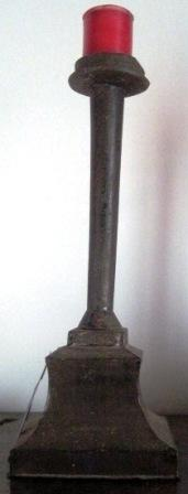 - Candeeiro dunha soa luz en madeira de castiñeiro e ferro. De corpo cilíndrico con progresión volumétrica en altura rematado en bocel voado sobre pedestal troncopiramidal.