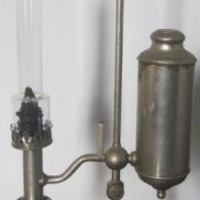 - Lámpada en aliaxe de estaño, tipo Argand. Consta dun pé de base circular con moldura en escocia e un vástago con depósito cilíndrico para o queroseno e un outro lateral para unha lapa con tubo de cheminea de vidro. Pertence ao modelo desenvolvido por Pillischer. Apareceron estas lámpadas cara o ano 1859 en sustitución das de aceite reprobadas por Edgar Allan Poe.