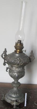 - Quinqué de petróleo en calamina, fundido a molde con forma de xarrón, con relevo de sereas de dobre cola e grutescos na macolla; dúas asas e catro pés en forma de garra. O tubo en vidro. A chave deste quinqué indica que o queimador é da famosa marca alemá Kosmos Brenner, que empezou a denominarse así cando, a finais do século XIX, Brökelmann, Jaeger & Co, de Neheim (Alemaña), comprou a marca "Kosmos" a Wild & Wessel, de Berlín. Kosmos foi o nome co que os lampistas alemáns Wild e Wessel sacaron ao mercado un novo queimador ou chisqueiro da su invención para lámpadas de petróleo. A toma de aire era de combustión lateral pero o sistema permitía levar o aire até o centro da lapa.