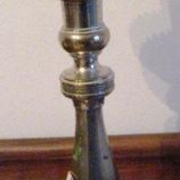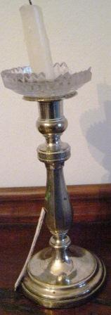 - Candeeiro en metal bañado en prata, dunha soa luz, de pé circular moldurado, astil abalaustrado e facetado, bocel superior con cenefa de grilanda de láureas repuxadas e entrelazadas e prato voado en cristal.