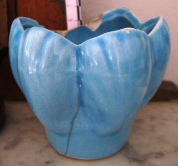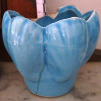 - Candeeiro lotiforme en cerámica vidrada azul propio da faiança de Alcobaça.