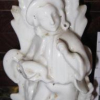 - Candeeiro en porcelana de cor branca con corpo en relevo dunha figura dun neno pastor.