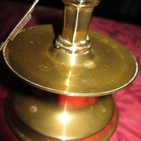 - Candeeiro dunha soa luz en bronce de corpo troncocónico, achatado, repisa exvasada e pé circular, tamén exvasado.