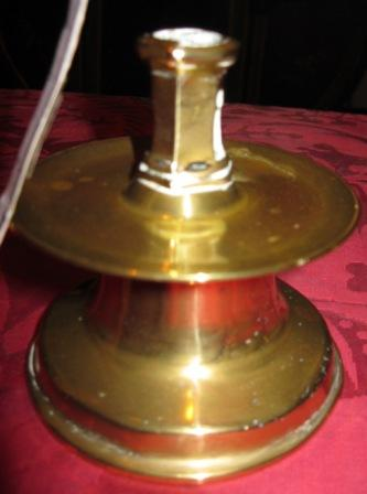 - Candeeiro dunha soa luz en bronce de corpo troncocónico, achatado, repisa exvasada e pé circular, tamén exvasado.
