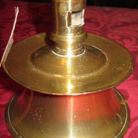 - Candeeiro dunha soa luz en bronce de corpo troncocónico, achatado, repisa exvasada e pé circular, tamén exvasado.