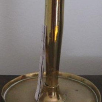 - Candeeiro en bronce, dunha soa luz, de corpo cilíndrico, pé circular exvasado sobre e catro pequenos soportes.