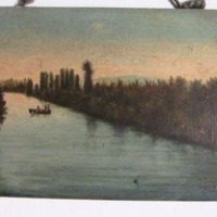 - Óleo sobre táboa de castiñeiro asinado por Cándido Garabal. É unha paisaxe a plein air, retrato da maior das lagoas artificiais do xardín inglés do Pazo de Tor. Albíscase unha barquiña e dous ocupantes, un deles a bogar.