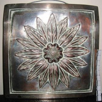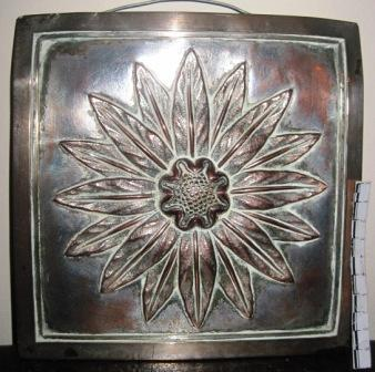 - Apliques de mantas que levaban os mulos para suxeitar a liteira en metal repuxado cunha flor de xirasol ao que atribuímos un carácter profiláctico.