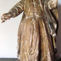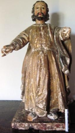 - Imaxe de vulto dun San Xosé tallada en madeira policromada en tons ocres e dourados. Sen atributos. De canon curto e factura popular.