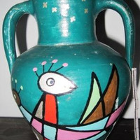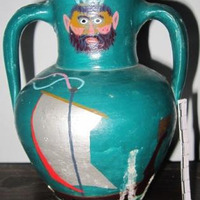 - Ánfora mallorquina en cerámica policromada, de dúas asas, fondo de cor verde, decorado no galbo con dúas aves e un trirreme tipo grego; no colo, o mascarón de Oceanus.