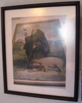 - Fotografía a cor dun cadro de Santo Antón. Marco en madeira.