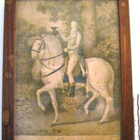 - Gravado a cor que representa a un xinete montando a cabalo. Marco en madeira. É un augaforte de Rafael Esteve Vilella (1772-1847) sobre debuxo orixinal de Antonio Carnicero (1748-1814). O xinete é o retrato de Fernando de Borbón, rei das Dúas Sicilias. O título do debuxo orixinal de Carnicero era "El Pasaje. Retrato del Príncipe de Parma". Formaba parte dunha serie destinada a ilustrar a tradución de Cerdá da obra de Dupaty de Clam, Practique de l'Equitacion ou l'art de l'Equitacion reduit en principes, Paris, 1769. Reimpresión da casa de Litografía fundada por Simeón Durà, Valencia.
