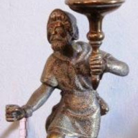 - Figura en bronce dun cazador con dúas aves colgadas no lombo e suxeitando un pebeteiro en forma de copa.