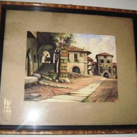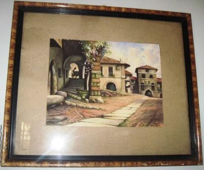 - Acuarela dunha rúa do pobo de Santillana del Mar. Marco en pasta. Asinado por Carlos Pombo xunto á data da obra. Carlos Pombo y Escalante, tal era o seu nome completo, natural de Santander, fora alumno do pintor Antonio Gomar e era sobriño de Antonio Menéndez Pidal. Participara na Exposición Internacional de Belas Artes de 1892, presidido o xurado por Federico de Madrazo, cunha paisaxe.