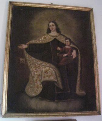 - Óleo sobre lenzo da Virxe do Carme. Sobre unha nube, vai coroada e leva manto carmelita que abre para amosar o escapulario coa dereita mentres sostén o Neno coa esquerda. Marco en madeira sobre dourado.