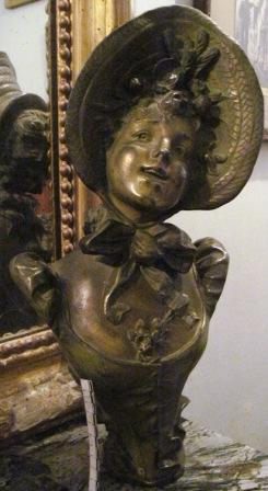 - Busto feminino fundido en calamina (aliaxe de estaño, zinc e chumbo) cunha pátina de cor que lle confire o aspecto de bronce dourado buscado. A imitación dos que facía un Alfred Foretay, segue o estilo moi de moda durante a Belle Époque e primeiros anos do Art Noveau, de bustos femininos de amplo escote e gran volume superior, que decrecen, estreitando cabo da base, en función do estereotipo de xénero das Gibson Girls. Facíanse con lixeiras variacións no toucado e adobíos. Este de Tor é moi moi semellante aos que producía, a partir dun molde, o escultor catalán Pedro Ramón José Rigual (1863-1917), que adoitaba asinar as súas obras na parte posterior. Esta vai sen asinar.