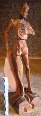 - Figura en madeira de nogueira tallada de don Quixote da Mancha, executada de acordo co arquetipo iconográfico debuxado por Gustave Doré e gravado por Pisan na edición de Collier (1898). Apoiado nunha adarga, leva a man esquerda ao peito, como declamando, talvez defendendo a pureza de Dulcinea. Asinada na base polo taller de artesanía OURO.