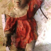 - Figura do neno Xesús con vestido vermello en madeira policromada.