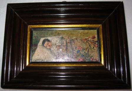 - Óleo sobre táboa que representa a un neno durmindo. Marco en madeira de cor negro con filete dourado na parte interior. Nel aparece a dedicatoria asinada polo artista Joaquín Agrasot Juan: "A mi hijo Ricardo de 50 días" Agrasot. O neno naceu o 19 de xuño de 1875, polo que a táboa foi pintada cara o 8 de agosto dese ano.