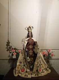 - Imaxe de bastidor policromada da Virxe do Carmo co Neno. Feita en madeira con brazos articulados, con vestido e manto en raso de seda natural bordado á man. Pendentes en prata e pedrería de estrás. Vai toucada con coroa imperial de follalata e conserva os escapularios orixinais. Figura en fotos da capela, do arquivo do Pazo, como imaxe que preside o retablo, anterior ao San Francisco aloumiñando ao lobo tallado por Rodríguez Osorio.